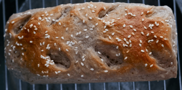As mentioned before, lentil bread bakes differently than the original one. The outside may look as though it is completely done, while the inside may still be underdone. In order to make sure that the center is baked as well as the rest, it is better to use a toothpick to check it. It should come out clean before you take the bread out of the oven.